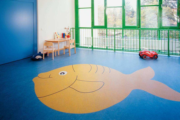 首先我們要考慮的就是環保無毒,而眾多的地板中,PVC塑膠地板就是一種非常受歡迎的輕質地面裝飾材料,因為其環保和物揮發的特點,能確保校園地面更適合孩童玩耍。